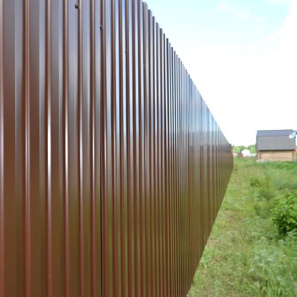 Покрытие предотвращает ржавчину, сохраняя вид на годы. Шоколадный цвет гармонично вписывается в ландшафт, добавляя стиль заборам или крышам.