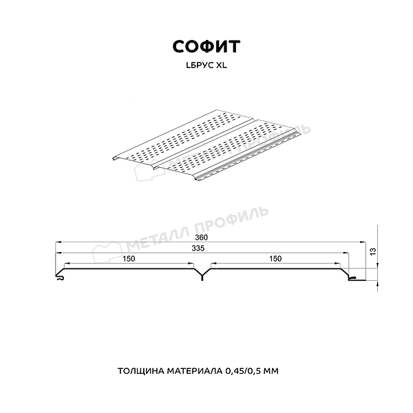 Софит МЕТАЛЛ ПРОФИЛЬ перфор. Lбрус-XL-14х335 NormanMP (ПЭ-01-9003-0.5)